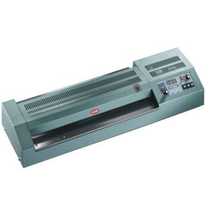 Plastifieuse à pochettes A1 (jusqu'à 650mm de large). Qualité de plastification impeccable. Convient pour tous types de documents, y compris les photos et le papier "couché machine". Vitesse max. : 165cm/min. Préchauffage : 3min. Vitesse et température ajustables de manière digitale. Témoin "READY". Touche "REVERSE" pour retirer les documents mal introduits.